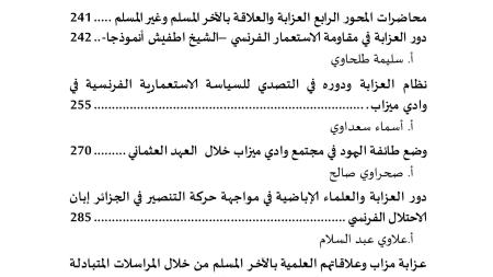 ستتناول المداخلات التعريف بهذا النظام، وظروف التأسيس والنشأة، وشخصية المؤسس، والدور التربوي لهذا النظام، ثم الأدوار الأخرى: العلمية والاجتماعية والاقتصادية والإدارية والتنظيمية، ودور العزابة في مصارعة الاستعمار، ودورهم في التنمية وفي الأخلاق، دون أن تجهل المداخلات دور المرأة في هيئتها التي اصطلح على تسميتها بـهيئة: "تيمسيريدين". أي تعزابْتْ، العزابية.