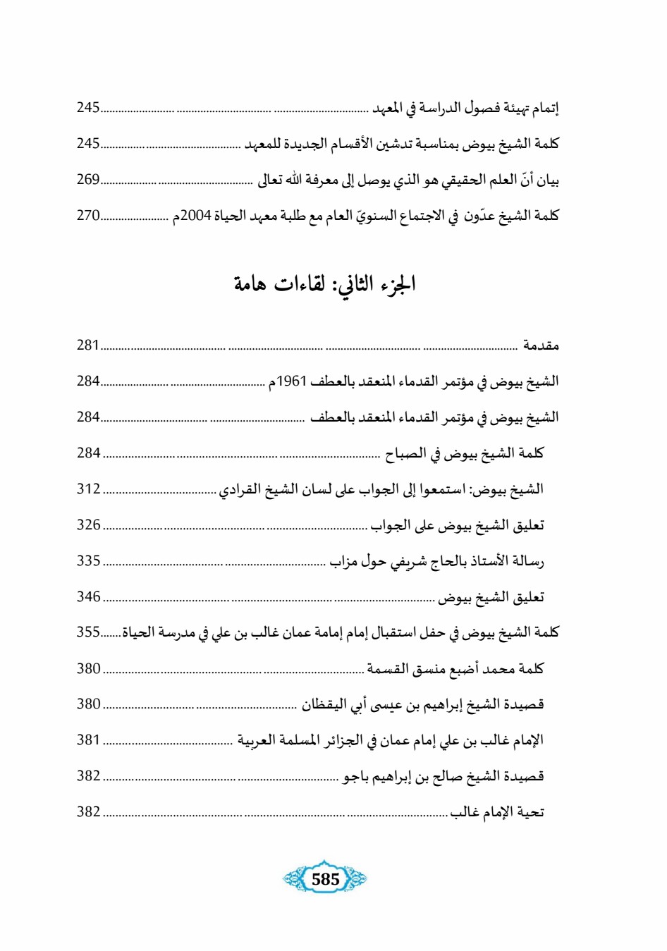 وفي جزءه الثاني: لقاءات هامَّة ... وهي كلمات من أمتع ما تقرأ وتطالع ألقاها الشيخ إبراهيم بيوض -رحمه الله- في ملتقيات هامَّة، وكان يُعير لهذه الملتقيات اهتمامًا بالغًا، إذ يراها أرضًا خصبة لزرع الروح الإيمانية، وميادين ممهَّدة لتركيز الرَّوابط الاجتماعية، ومناسبات وطيدة لتحديد المبادئ الحقيقية التي أسست عليها الحركة الإصلاحية التي يرفع رايتها، وبيان الأهداف العليا التي يرمي إليها، وهذا ما سيتبينه القارئ بنفسه من خلال هذه الكلمات النيرات ...