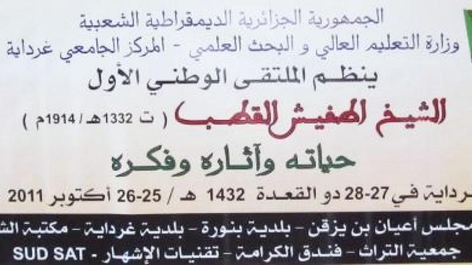 قام معهد الآداب واللغات بالمركز الجامعي غرداية بتنظيم الملتقى الوطني الأول "الشيخ اطفيَّش القُطب (ت:1332هـ/1914م) حياته وآثاره وفكره"