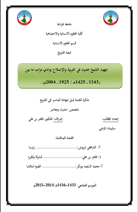 جهود الشيخ عدُّون في التربية والإصلاح بوادي مزاب ما بين