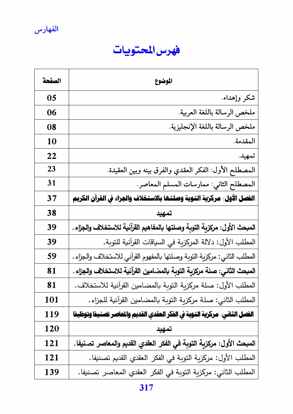 لا يمتري باحث مطلع أن الكتابات في التوبة كثيرة جدا لغاية تعذر حصرها، وقد سعيت جاهدا إلى تقليب كلمات هذه الدراس ة من عدة جوانب في محركات البحث، فلم يتم العثور على دراسة للمركزية في القرآن الكريم والفكر العقدي وممارسات المسلم المعاصر بالشكل الذي نطمح إليه، وليس هذا الكلام استنقاصا، بل تركيز على الموضوع الرئيس، وأما فروعه كموضوع الاستخلاف ، والجزاء بنوعيه، ومكانة التوبة وفضلها في الإسلام، وإصلاح واقع المسلم المعاصر، فهذه موجودة لكن ليس في مشغل علاقتها بمركزية التوبة، ومع ذلك اجتهد الباحث في الاطلاع على أكبر عدد منها بما يفوق الستمائة دراسة، فوجدت أغلبها تأصيل وإعادة للمسائل المعروفة في مبحث التوبة.