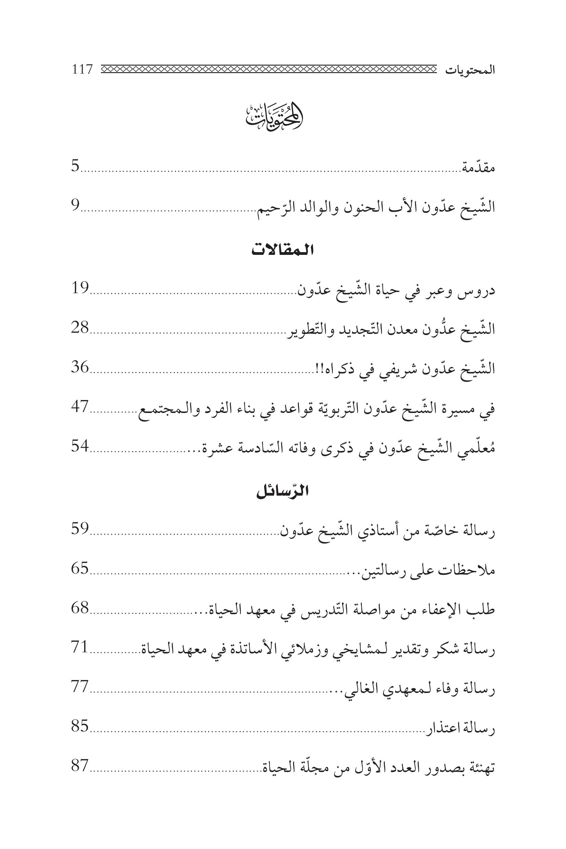 أحمد الله وأشكره أن وهب لي أبا حنونا، ووالدا رحيما، ومعلّما مخلصا، وموجّها نصوحا، ومجرّبا محنّكا، ورائدا قديرا ...، ارتبطتُ به فاستفدتُ، جلستُ إليه فتعلّمت، قرّبني هو إلى حضنه فرعاني وشجّعني على العمل والإبداع... إنّه شيخي وأستاذي ووالدي الشّيخ عدّون رحمه الله. فممّا يتميّز به حبّه الشّديد لأبنائه وطلبته ولكلّ من يبدي نشاطا متميّزا وعملا دؤوبا في خدمة المجتمع..