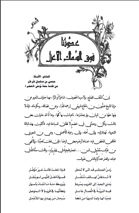 إنَّ المثقف الضليع، ولا سيما الحصيف، شاعرًا أو ناثرًا، مهما حاول التعبير عن مزايا الشيخ عدُّون بن بالحاج شريفي(رحمه الله)، وعن فضائله، ومكرماته، فإنه لا يفيها حقها من البيان ولو بمعشارها، ناهيك بها كلّها، وها أنا قد حاولت بعض ذلك ولكن وجدتُني في خضمٍّ لا تطاق السباحة فيه، فاكتفيت بهذه الباقة الشعرية، مُهداة إليه، وإلى أهله، وإلى رعيله الأحمدي، وهي من شعوري الخالص المخلص فيه، عساها تُرضيه بعض الرضا، فإن فعلتُ فحبَّذا، وإلاَّ فهي من غَزْلِ متقدِّمٍ في السن... فمعذرة فمِغزلُه في تهاوٍ وتَردٍّ، وتلك سنَّة الله في عباده، والعذر عند كرام الناس مقبول.