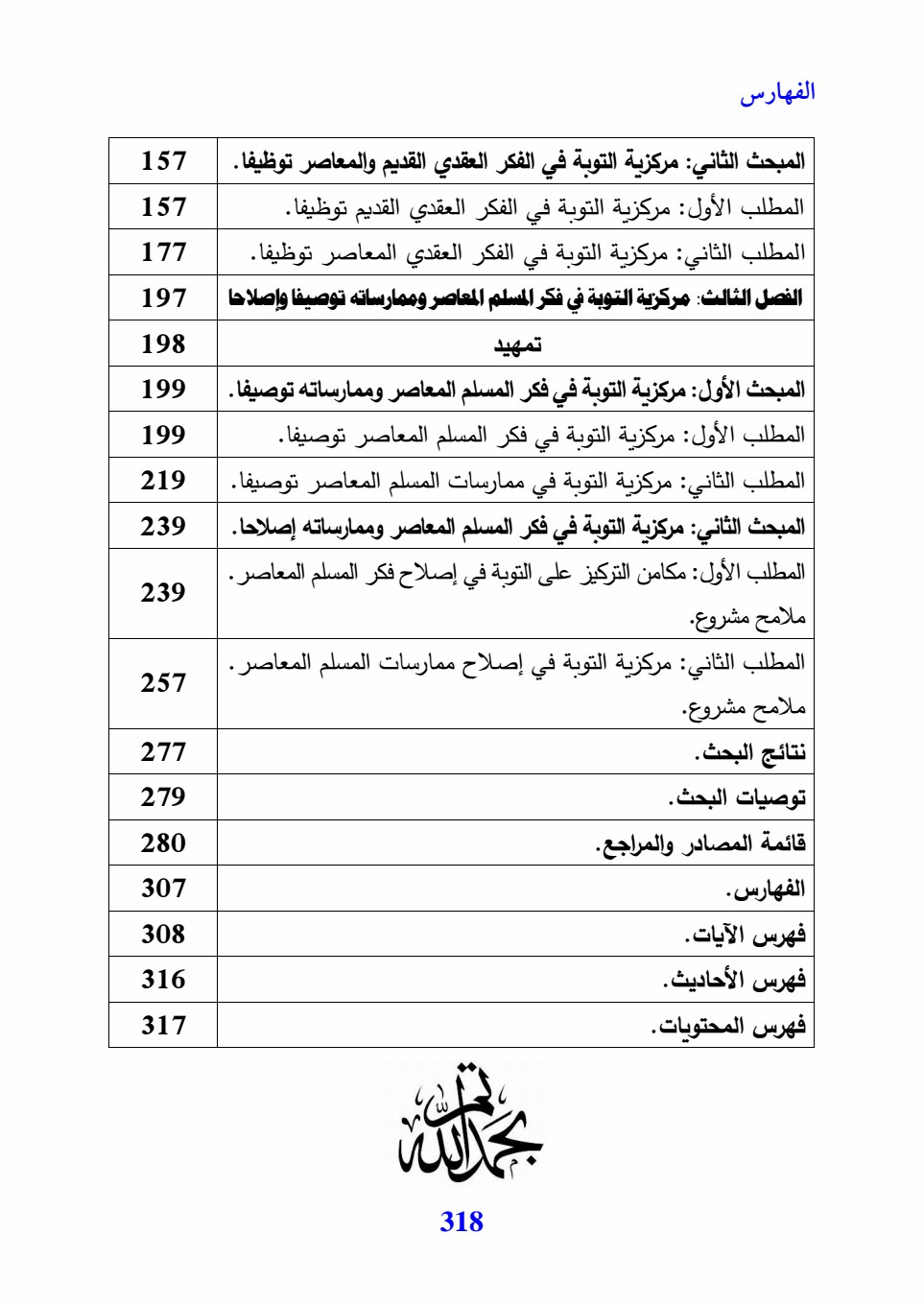 لا يمتري باحث مطلع أن الكتابات في التوبة كثيرة جدا لغاية تعذر حصرها، وقد سعيت جاهدا إلى تقليب كلمات هذه الدراس ة من عدة جوانب في محركات البحث، فلم يتم العثور على دراسة للمركزية في القرآن الكريم والفكر العقدي وممارسات المسلم المعاصر بالشكل الذي نطمح إليه، وليس هذا الكلام استنقاصا، بل تركيز على الموضوع الرئيس، وأما فروعه كموضوع الاستخلاف ، والجزاء بنوعيه، ومكانة التوبة وفضلها في الإسلام، وإصلاح واقع المسلم المعاصر، فهذه موجودة لكن ليس في مشغل علاقتها بمركزية التوبة، ومع ذلك اجتهد الباحث في الاطلاع على أكبر عدد منها بما يفوق الستمائة دراسة، فوجدت أغلبها تأصيل وإعادة للمسائل المعروفة في مبحث التوبة.