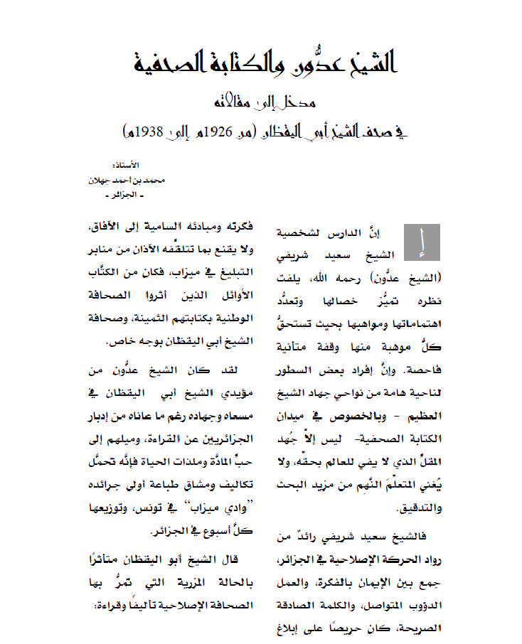 الشيخ عدُّون والكتابة الصحفية
